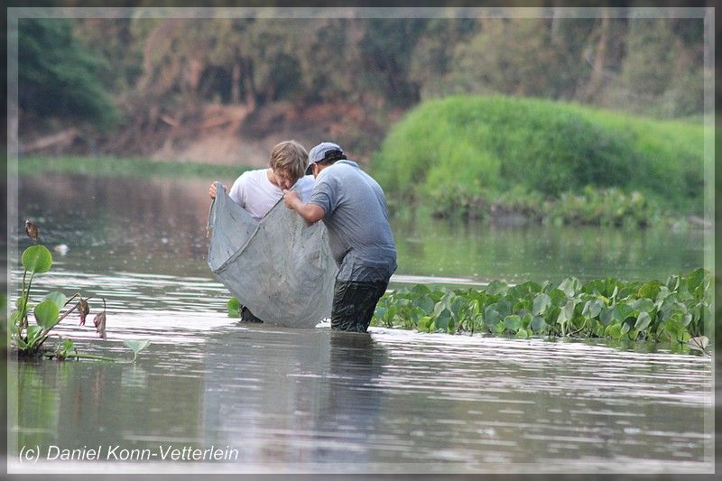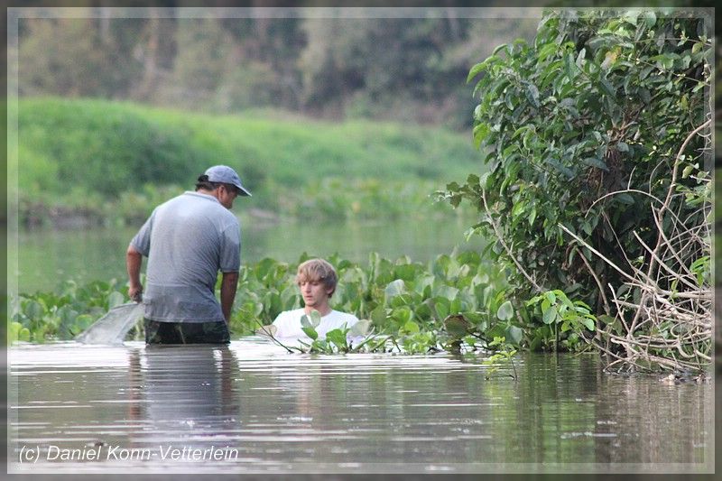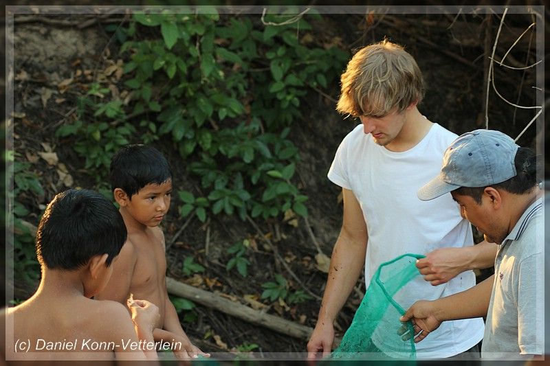 hier nun die ersten Fotos aus Bolivien. Ich bin schon drei Wochen zurück, war allerdings die letzte Zeit viel mit Umziehen, Wohnung suchen und Erstiewoche feiern beschäftigt, aber jetzt hab ich ein paar Fotos. Hier waren wir im RÃ*o Blanco fischen, der zusammen mit dem RÃ*o Negro das "Reserva Forestal del RÃ*o Negro y RÃ*o Blanco" bildet, nordöstlich der Stadt Guarayos im Norden des Dpt. Santa Cruz. RÃ*o Blanco Gut besucht auch von den Einheimischen. Wir waren am Nachmittag/Abend dort, dann gehen alle zur Abkühlung ins Wasser. Hier war nichts Besonderes drin. Also nochmal: So tief kanns ja nicht sein, einfach bis ran. Bis an die Uferböschung! Weiter! Und weg waren sie. Da mein werter Herr Gehilfe irgendwann so panische Angst vor den Rochen hatte, dass er nicht mehr ins Wasser wollte musste ich das ein oder andere Ufer alleine abgrasen. Wenigstens hatte ich dann bei der Auslese fachkundige Hilfe. ;-) lg der Daniel