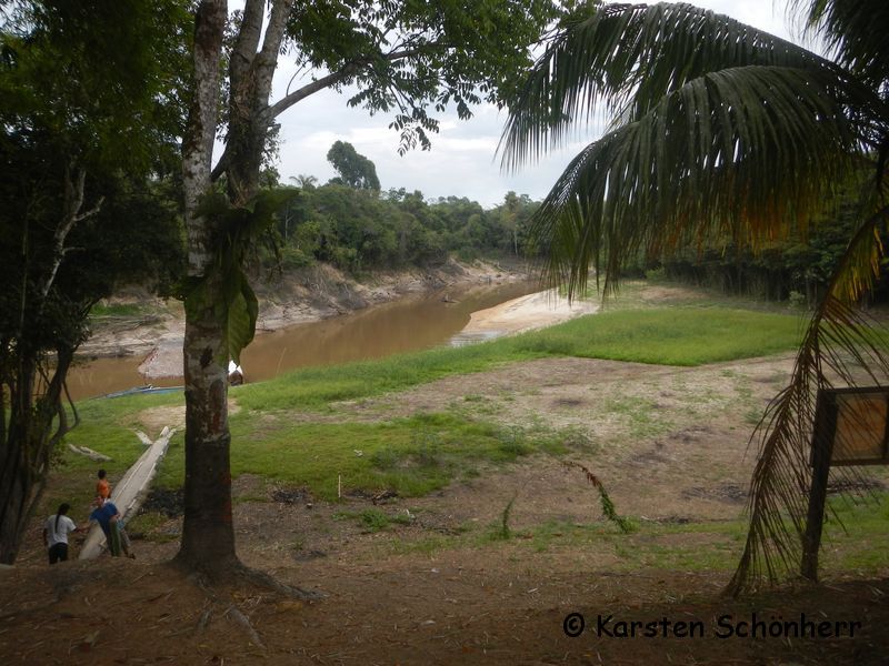 ne, leider keinen einzigen, obwohl ich noch zweimal am Rio Momon war, aber jeweils nur kurz. Beim ersten Mal meinte Ricardo er hätte direkt im Rio Momon Corydoras zwischen den Steinen gesehen. Der Fluss war nochmal viel flacher (maximal hüfttief), dass man problemlos auch auf den andere Seite kam. Aber leider haben wir dann doch nur den hier gefangen (neben einigen wenigen Salmlern und Dornwelsen): Eine knappe Woche später sah es dann so aus: Die Quebrada an der Grundstücksgrenze führte diesmal Wasser, Klarwasser wie aus dem Bilderbuch !!! Aber gefangen haben wir fast gar nichts, 3-4 Apistogrammas und ähnlich viele Minisalmler. Danach hat es nur noch für einen Zug mit dem Zugnetz gereicht und da waren die schon gezeigten Welse drinnen. Gruß, Karsten