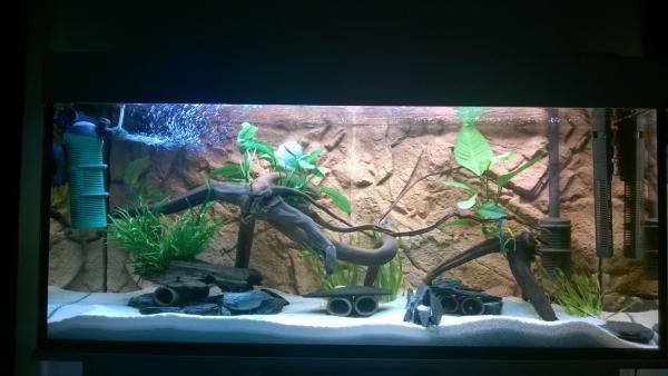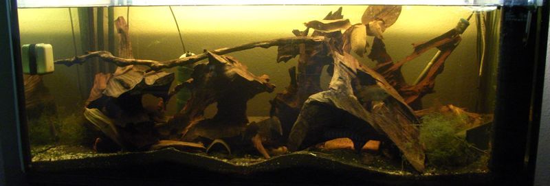 Moin Leute, L46-Becken ist noch im Status idem. Neu ist jetzt der Versuch eines Schwarzwasserbeckens im ruhigsten und am seltensten betretenen Raum eines Singles... dem Schlafzimmer ![]() Aber erstmal zu den Daten. Skelett: Eheim Vivaline 180l Becken (white) Bodengrund: 0,4-0,8mm beiger Sand von Schicker Mineral Höhlen: 6x Aqua Keramik Tonröhren bds offen braun Pflanzen: Javafarn, - moos, Vallisneria und einer Anubias Pfleglinge: Hemiloricaria melini Beleuchtung: T5 Dennerle Tropical Amazon Day und Tropical Special Plant Selbst-Kritik No 1: Das Becken ist noch zu hell, aber hatte die Röhren noch rumzuliegen und die sind deutlich wärmer als die Originalen. Ziel ist auch eine LED gesteuerte Beleuchtung. Eine Bemerkung zum Sand: Er ist tadellos, allerdings habe ich gelernt, das mehrfach gewaschen nicht bedeutet, dass man ihn nicht selber auch nochmal waschen sollte. ![]() Die Trübung des Wassers hat mehrere WW gedauert, bis ich wieder durchschauen konnte. ![]() Schönes Rest-Wochenende und viel Spaß allen American Football Fans bei den Championchip games heute Abend! Hanjo |