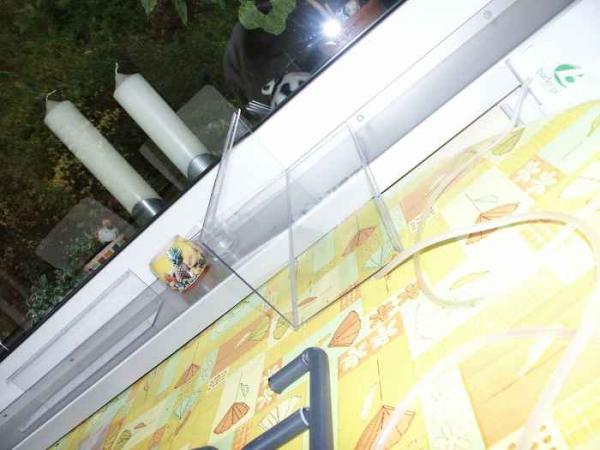 Achso, anstelle der Teuren Dichtringe habe ich gerade eine andere Methode gefunden. Ich habe von einem 16/22 er Schlauch schmale Ringe mit einer Rosenschere abgeschnitten. Die passen prima ![]() Luftheber am laufenden Meter ![]() Griffe zum anheben der Glasplatten: Trennwand und Mattenhalter aus Plexiglas (finde die ganze Abtrennung des Beckens komplett mit Matten nicht so toll) : Das ganze im Becken ohne Matte: Die Matte am einfahren: Mattenhalter aus Plexiglas: Das Chaos im Gemeinschaftskeller. Gut das ich so nette Nachbarn habe ![]() MFG Michael
