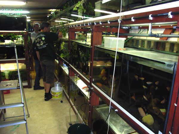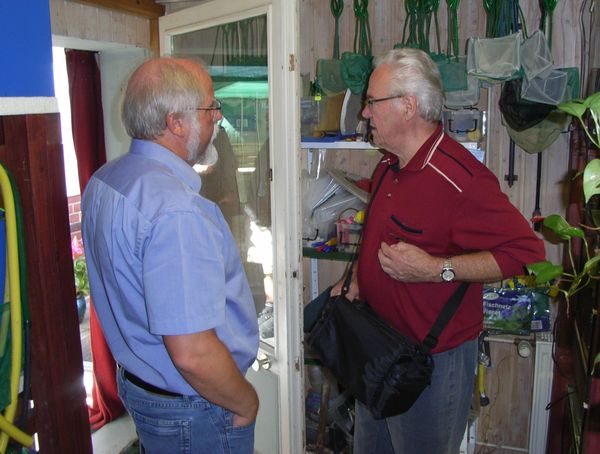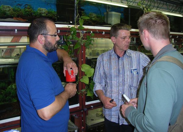 Andi beim Frühsport: Wulf und Robert: Volker, unser Sonnenschein:p: Erholung vor der anstrengenden Besichtigung: Winziger Teil der Anlage, Blick in einen Seitengang: Angeregte Diskussionen: Der Eingangsbereich der Anlage: Kleine Eimersammlung für den Transport der Fische zu den Börsen: Im Garten vor der Anlage: Gruß, Karsten |