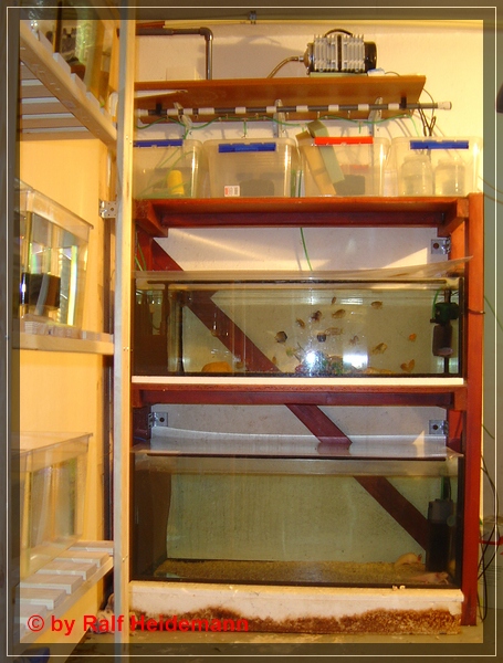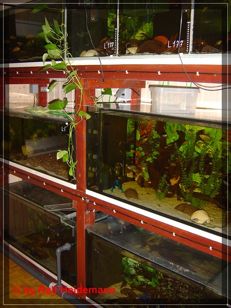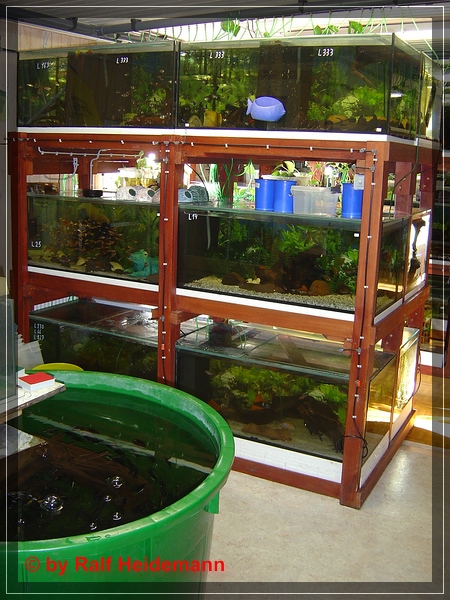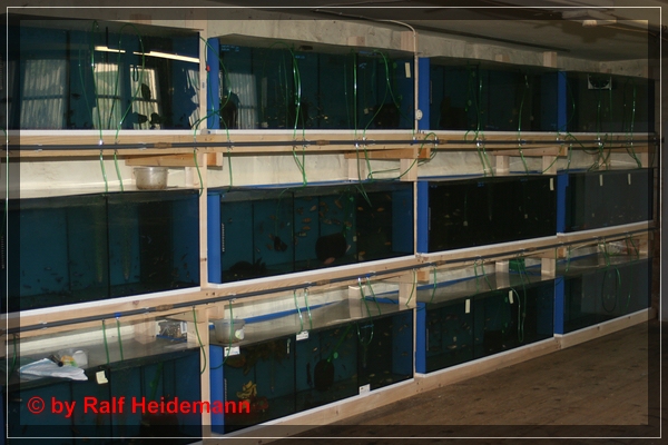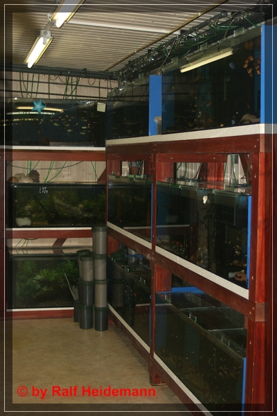 erstaunlich wie sauber und ordentlich (die Eimer stehen in "Reih und Glied") das alles bei Ralf aussieht (bis auf den vergammelten roten Schemel :-). Da kann sich so mancher Händler, der ja Anlagen kleinerer Größe beruflich betreibt, noch was von abgucken. Auch wenn das Äußerliche die Fische nicht stört solange das Wasser in Ordnung ist, dem Auge gefällt es trotzdem. VG Ben |