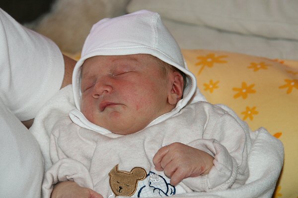 Am Sonntagmorgen, dem 26.07.09 um 2.40 Uhr erblickte er nach einigen anstrengenden Stunden das Licht der Welt mit seinen zarten 3010 Gramm und 50cm. Die tapfere Mama und der stolze Papa sind wohlauf und glücklich und ergründen nun mit ihm in aller Ruhe zusammen die Geheimnisse des Lebens zu Dritt. Ein reges Interesse an bunten Fischen ist schon deutlich erkennbar. Juhu! ;-)