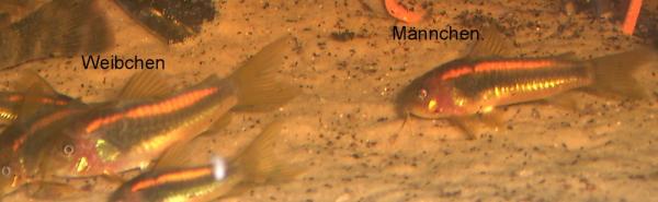 ja, das siehst du richtig. Hier nochmal ein Foto, wo es etwas deutlicher wird: Aber ich gestehe: Auf Fotos ist das wesentlich leichter zu erkennen, als in der schwimmenden wuselnden Gruppe. ![]() Hier ein Foto von C. ehrhardti, wo man das recht gut erkennen kann: Das Kleinere ist das Männchen, das größere Tier das Weibchen. Lieben Gruß Bine |