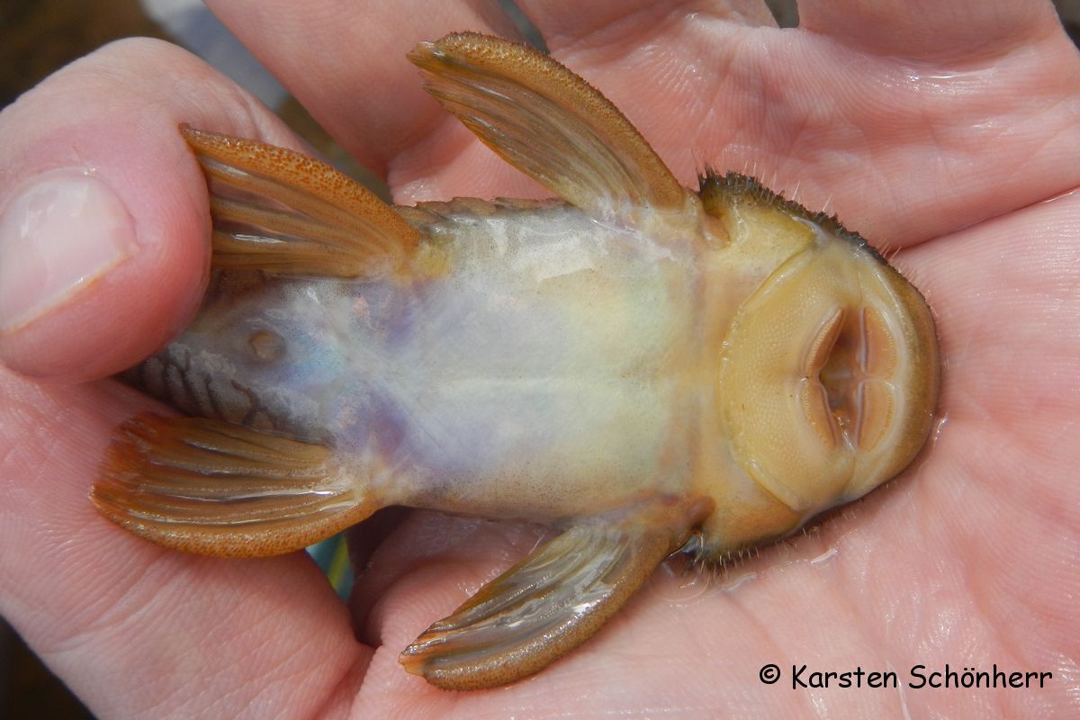 Juvenile Pseudancistrus kwinti erinnern in Färbung und Statur recht stark an Peckoltia-Arten und scheinen sich auch primär in den nicht extrem stark durchströmten Bereichen aufzuhalten. Auch die adulten Tiere konnte ich nicht in Felsspalten mit extremer Strömung beobachten; dort findet man eher die stärker abgeflachte Art Pseudancistrus depressus.