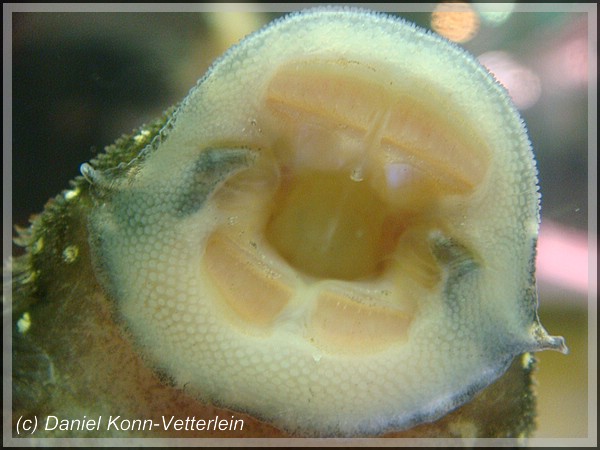 Durch Anklicken des Bildes erhalten Sie eine vergrößerte Ansicht des Mauels eines Fliegerharnischwelses.
