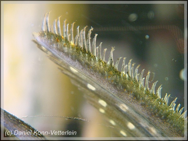 Was besonders auffällig ist bei dieser sehr abgeflachten Welsart, sind die sehr langen Pectoralstacheln der Brustflossen.