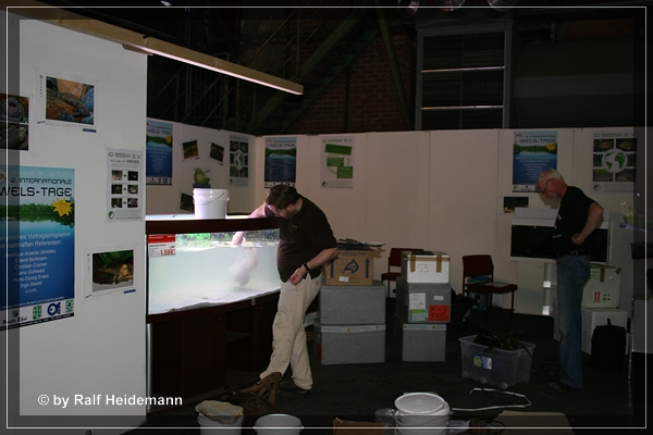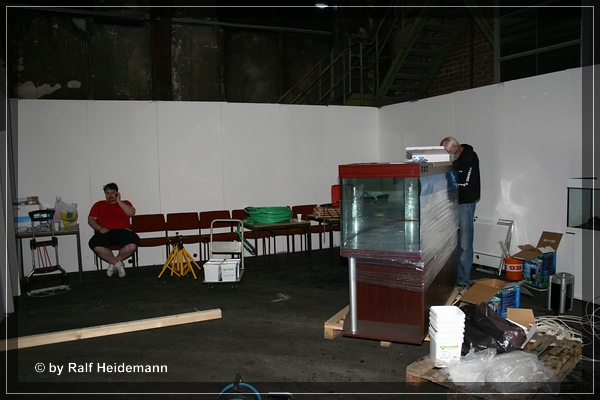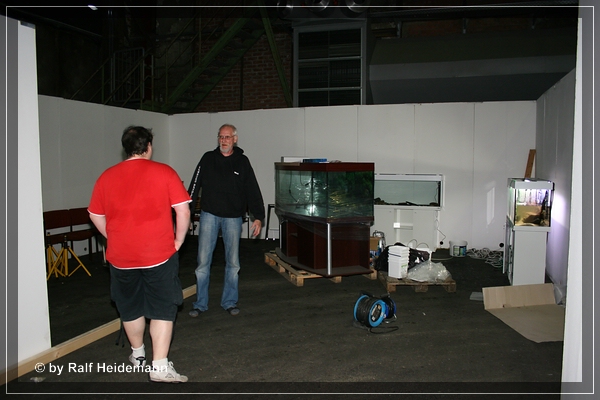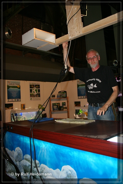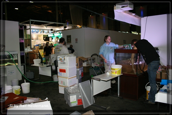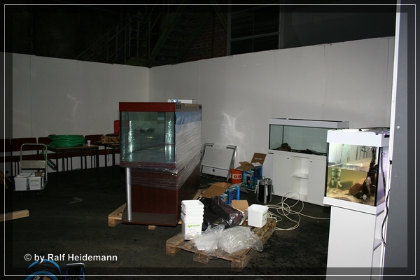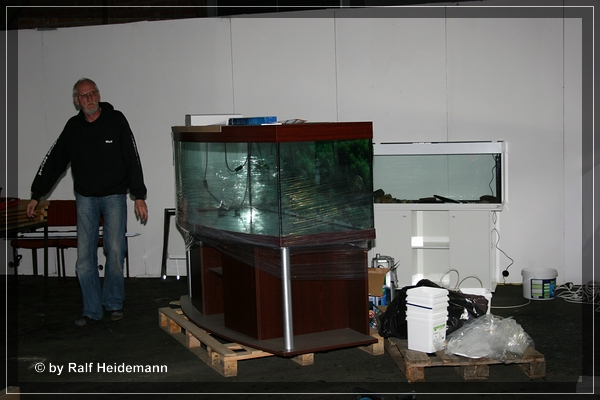 Zum Aufbau stand Wulf schon bereit, um sein Becken einzurichten und den Messestand