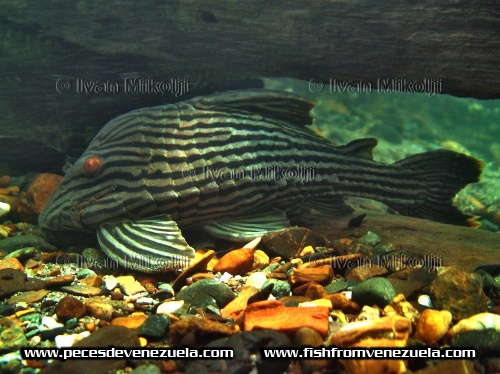 Synonyme: Schwarzlinien-Harnischwels, Royal-Harnischwels, Streifenharnischwels, Chaetostomus nigrolineatus, Rotaugen-Panaque, Royal-Plecostomus.